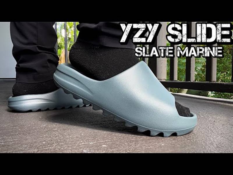 Yeezyy Slide Slate Marine UA. With Anti Lock Zip Tie Butter Paper Sticker Tag